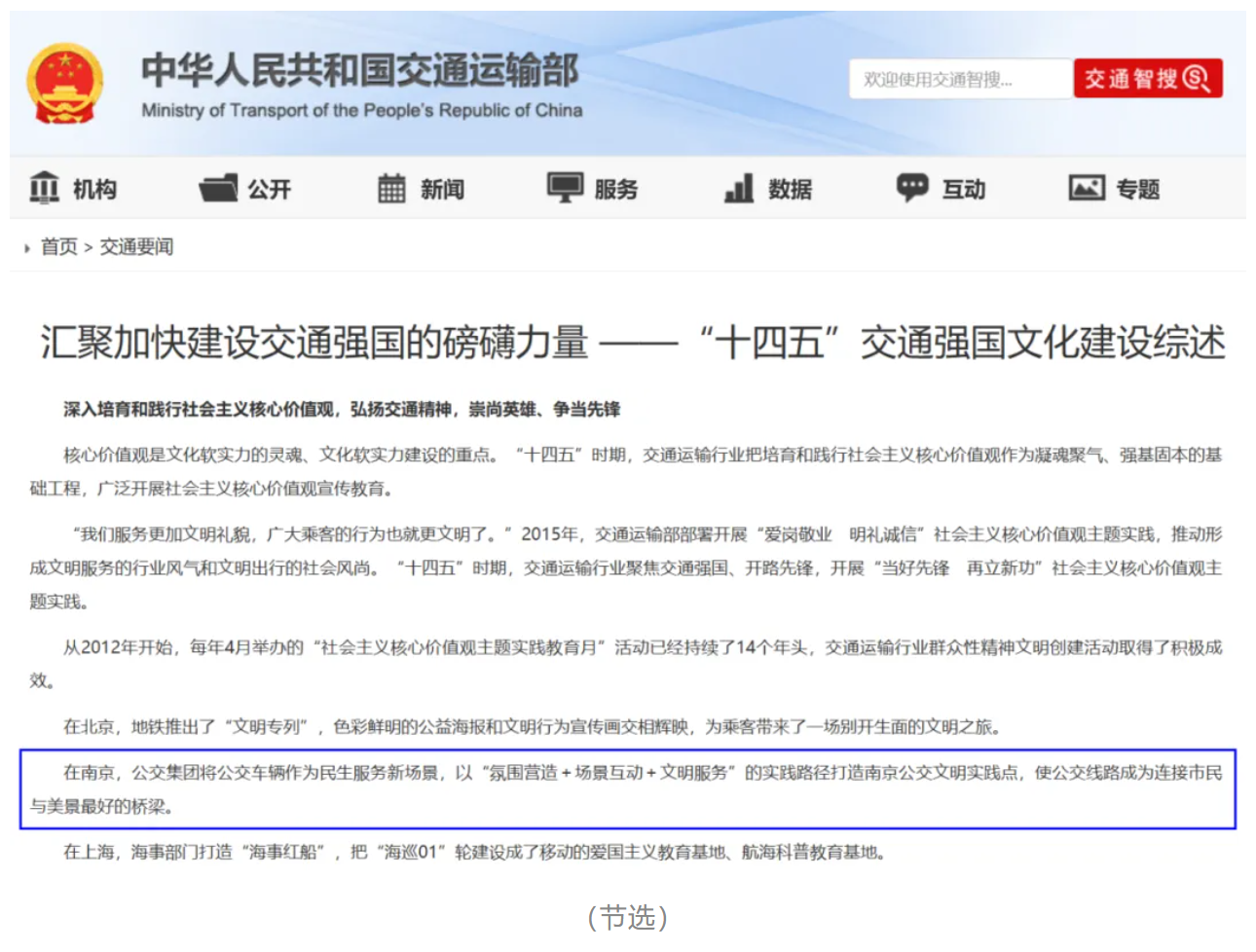 交通運(yùn)輸部點(diǎn)贊南京公交!