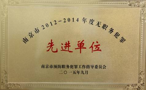 南京市2012——2014年度無職務(wù)犯罪先進(jìn)單位